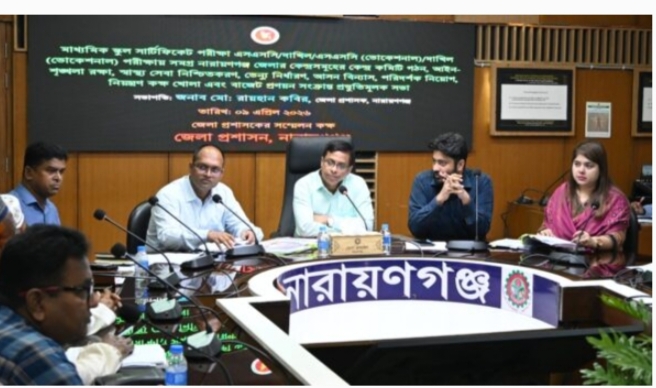 নারায়ণগঞ্জ জেলায় আসন্ন এসএসসি, দাখিল ও সমমান পরীক্ষা ২০২৬ সুষ্ঠু, শান্তিপূর্ণ ও নকলমুক্ত পরিবেশে আয়োজনের লক্ষ্যে প্রস্তুতিমূলক সভা অনুষ্ঠিত হয়েছে।